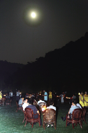 又是一夜君須記,今宵南山更無(wú)眠……昨晚,由市(shì)園林(lín)局主辦的“采月(yuè)南山”——中秋賞月晚會,在一段富(fù)有詩情畫(huà)意的歡迎辭中拉開(kāi)了帷幕。 農曆八月十六,中(zhōng)秋賞(shǎng)月好(hǎo)時節。昨晚,明亮皎潔的月光下,如毯的草(cǎo)坪上,支支搖曳(yè)的燭光點綴著南山的夜景。幾十張(zhāng)古(gǔ)典雅致(zhì)的方桌椅,坐著來自社會(huì)各界的“見義(yì)勇為”代表、“大愛之星”代表、書畫(huà)文藝界精英、文明誌願者、風景園林建設(shè)者、網民代表等近200人。大(dà)家相聚南(nán)山,聆聽山水的呼吸,放飛輕鬆的思緒,品茶、聽樂、寫詩、作畫,共享花好月圓的美好時刻。 當晚的南山賞月晚會沒有(yǒu)太多刺(cì)眼(yǎn)的燈光,也沒有喧囂的歌舞表演,取而代(dài)之的是古(gǔ)琴、簫、揚琴、琵(pí)琶等(děng)民樂演奏。淡(dàn)雅而纏綿的簫(xiāo)聲從遠處隱隱傳來,溪邊涼亭內身著古裝的文人雅士表(biǎo)演著圍棋對弈、書畫創作、詩詞朗誦等傳統的文化(huà)藝術,營(yíng)造出了溫馨、高雅,又富有望月抒懷情調的氛圍。 “哇(wa)!感(gǎn)覺自己到了人間(jiān)仙境!”獲得省見義勇為稱號的夏國萍欣賞著眼前的景色,有(yǒu)些出乎意料。她說,沒想到南山有這樣的美景,而這種賞月的場景也隻有在(zài)古裝(zhuāng)劇中才能看到。夏國萍每年的中秋節(jiē)都是(shì)與家人一起吃頓團圓飯(fàn),參加那麽優(yōu)雅的集體賞月活動還是第(dì)一次,她希望以後多舉辦這樣的活動(dòng),讓更多的(de)人感受中國的文化,陶冶(yě)情操,提高自(zì)身的文化(huà)內涵。 |