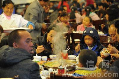 室外雪下得正“High”,火鍋店裏卻熱火朝天。華(huá)昌路上重慶老(lǎo)火(huǒ)鍋店的楊老板(bǎn)中午特意叫夥計加(jiā)夠了客人愛點(diǎn)的豌豆尖、大白菜等。“比昨天多買了一倍。”楊老板說,近段時間每天的菜金也就300元左右,昨天他把菜金提高了一倍,還不到6點半,店裏所有的桌子全部坐滿。