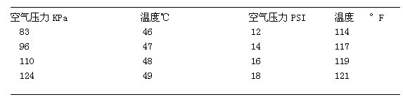 表2 在35℃(95°F)下,空氣飽和塔上部操作所適用(yòng)的(de)溫度和壓力規範