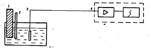1:溫度控製儀(yí)、2:玻(bō)璃棒溫度計、3:溫度傳感器、4:數字電壓表(biǎo)(測(cè)量放大(dà)、自動顯(xiǎn)示) 循環式(shì)恒溫水槽按圖4所(suǒ)表表示的方法,將溫度傳感器置於循環杯的幾何(hé)中心,進行15min的連續測試記錄。