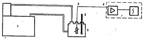 1:恒溫水槽、2:玻璃(lí)棒溫度計、3:溫度傳感(gǎn)器、4:數字電壓表(測量放大、自動顯示)、5:循環杯(bēi) 將測試得出的溫度按下式進(jìn)行計算: △T=±(Tmax-Tmin)/2 式中:△T→溫度波動度℃; Tmax→最高溫度值℃; Tmin→最低溫度值℃。