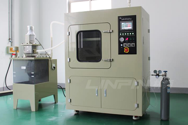 排(pái)廢風機采用離心式風機,高效、耐(nài)腐蝕。試驗結束後,打開排氣閥,通(tōng)過(guò)離心風機抽氣,將箱內廢氣輸送至裝有氫氧化鈉(NaOH)固體的一級過濾係(xì)統中進(jìn)行酸堿中和,然後再通過裝有(yǒu)活性炭的二級過(guò)濾係統對中和後的氣體進行吸(xī)附(fù),試驗廢氣經過兩級處理後可排放到大氣環境中,對周圍環境沒有危害。